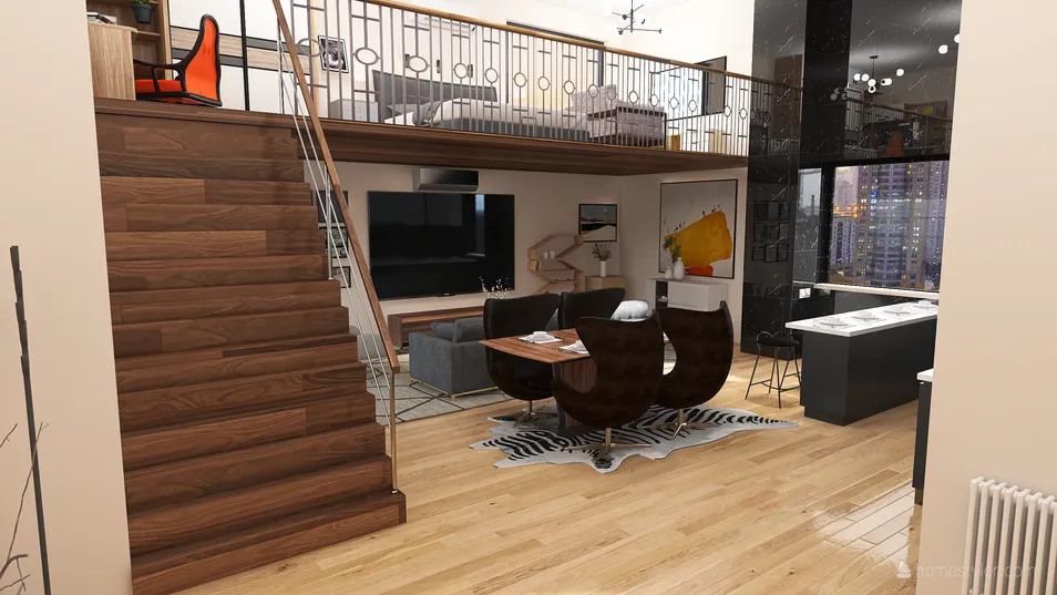 Este es un ático que cuenta con un interior de 70m2 y una terraza de 50m2. Cuenta con un baño, una cocina, un salon/comedor, todo esto en la primera planta, y en la segunda con una habitación con cama matrimonial, por lo que este piso sería adecuado para dos personas.