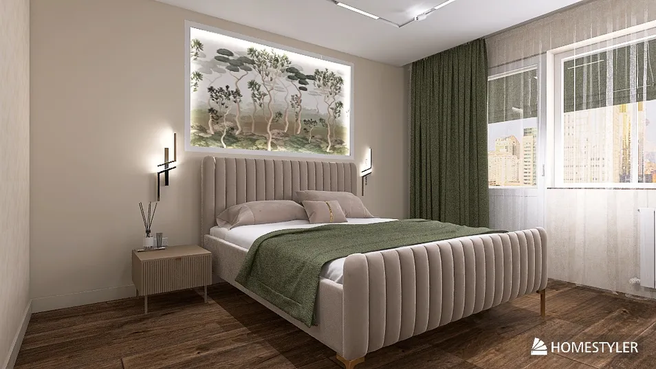 В современном интерьере бежевые и болотные оттенки создают уютную атмосферу. В этой квартире есть 3 детские комнаты, каждая из которых поддерживает настроение ребенка.