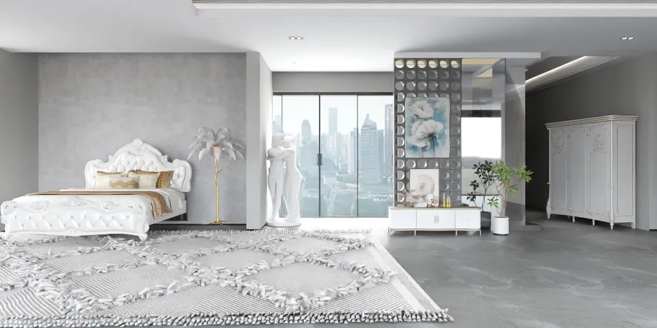 В этом пространстве, где белоснежные линии встречаются с серыми акцентами, царит безмятежность. Мягкость текстиля и строгие геометрические формы создают идеальный баланс. Окно открывает мир, но внутри — лишь тишина и свет.