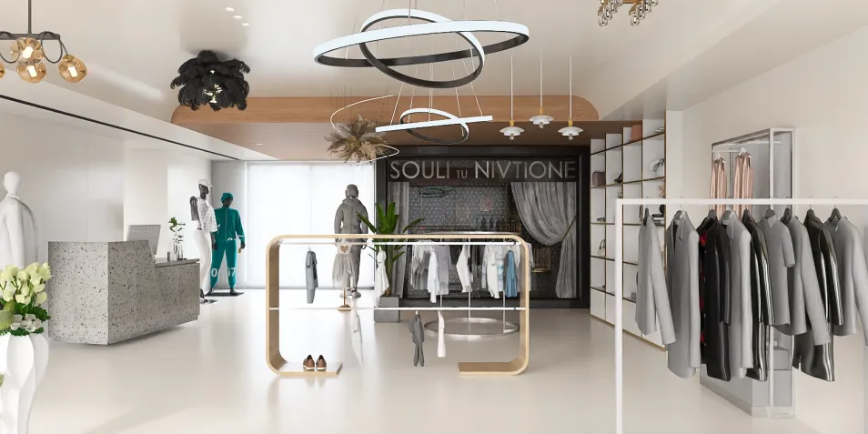 تتداخل الأضواء المتلألئة مع الأشكال الهندسية الناعمة، حيث تتراقص الأزياء الأنيقة على شماعات أنيقة. يخلق هذا الفضاء شعوراً بالانفتاح، بينما يظل كل تفصيل يحكي قصة من الأناقة العصرية.
