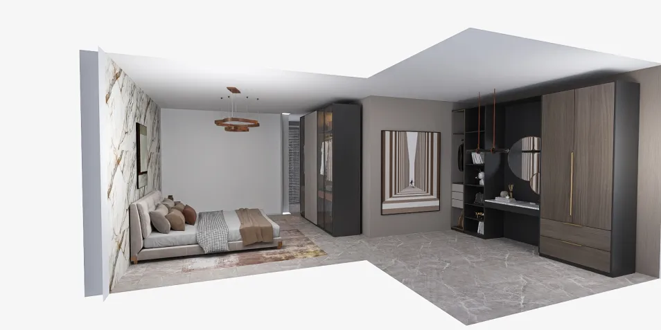 This bedroom combines simplicity and comfort. The stone texture of the headboard background wall conveys a natural atmosphere. Combined with soft tones and exquisite furniture, it creates a tranquil atmosphere, a perfect place to rest.@homeseek