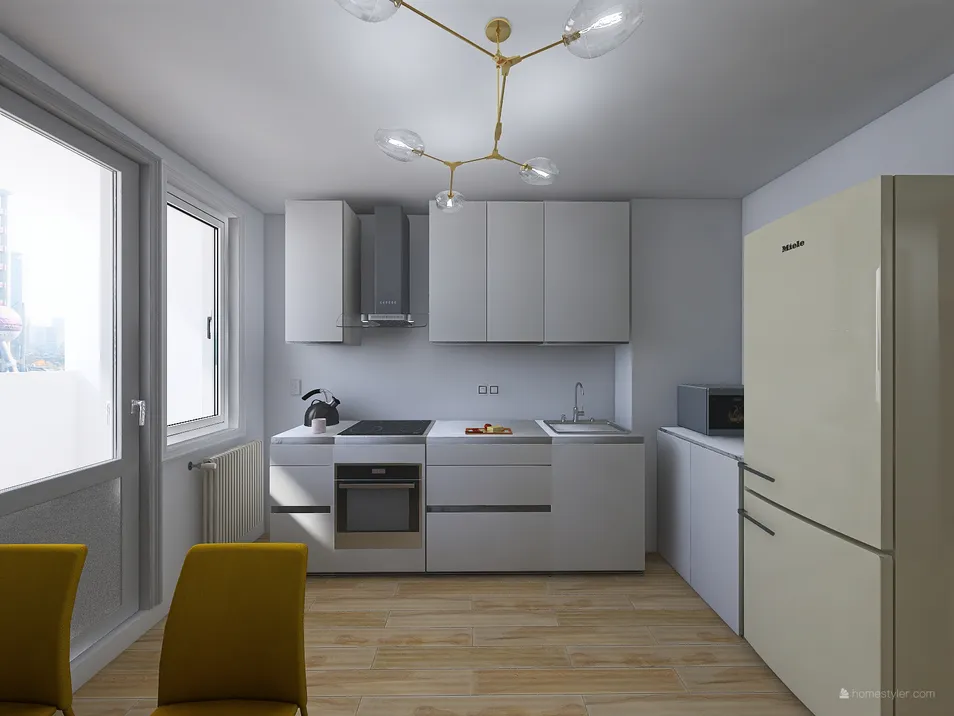 Version 2. Small two bedroom apartment 45.09 meters. Minimalistic design. This apartment is suitable for a couple with an adult child or for two friends.
