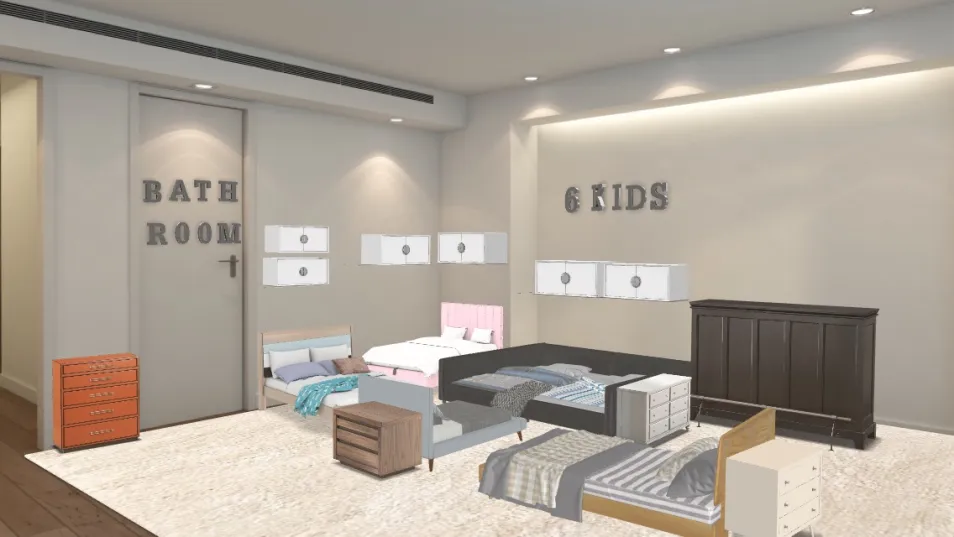 I got this rooms inspiration from a YouTube channel called the ohana adventure. They are a family of 8. 6 kids. 2 parents. Oh plus Shaw and Fila their dogs. Anyway I got this inspiration from the kids and what kind of room they would need, how many beds and of course how many dressers. Anyway subscribe to them. Also have fun and enjoy life.