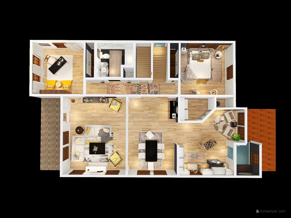 Reno ideas for a small row house in Birmingham, AL. Currently 3 bed, 1 bath, and lots of choppy rooms and doors. We plan to open up the living spaces, rework the current eat-in-kitchen, add a stairwell and build out a master suite in the attic area.
