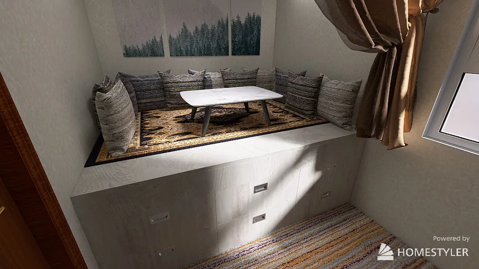 In Midtown Manhattan, NYC is another closet apt. that rents for $1200 a month. it is 9 ft long and 6 feet 9 inches wide. It was suggested that a loft bed would work.. there is no bathroom, no sink, the bathroom is down the hall in this apt building. The challenge was to figure out space, storage, maybe a way to hide a compost toilet, water bottles, squeeze in cooking, have a place to sleep, maybe have a couple ppl over for sanity sake and to have a place for a few clothes. Raised floors in some cultures are for air flow but I used it for storage, sleeping, socializing, dinning all in one area.