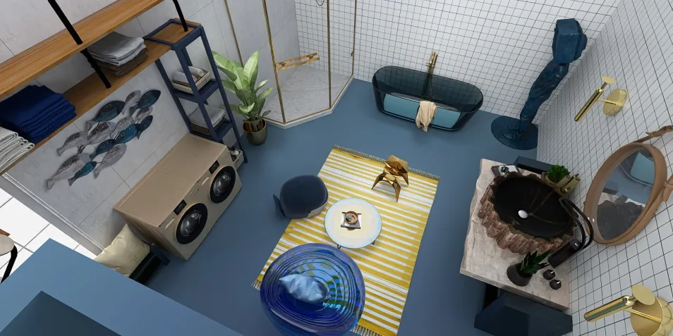 ✨ A bathroom in navy and gold: A retreat fit for royalty! Navy brings depth and serenity to the space, while golden accents add a touch of luxury and grandeur. Together, they transform your bathroom into a stunning sanctuary of elegance and tranquility.