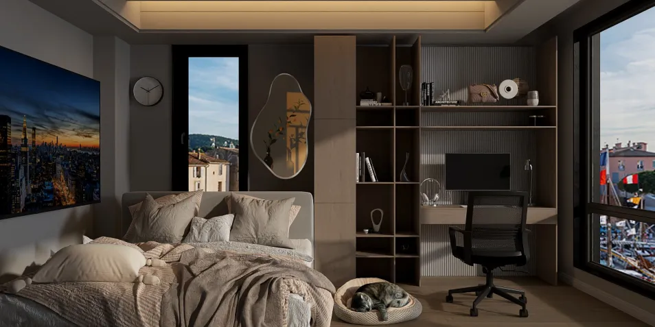 In this serene sanctuary, where soft hues embrace the light, every corner whispers comfort. The gentle touch of linen and the subtle elegance of wood create a harmonious retreat, inviting you to linger just a moment longer. Here, tranquility dances with inspiration.