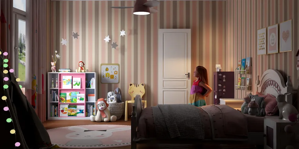 In this whimsical room, pastel hues dance on the walls, cradling a world of wonder. Soft toys gather like old friends, while shelves brim with stories yet to unfold. A gentle light filters through, whispering secrets of childhood dreams, where imagination knows no bounds.