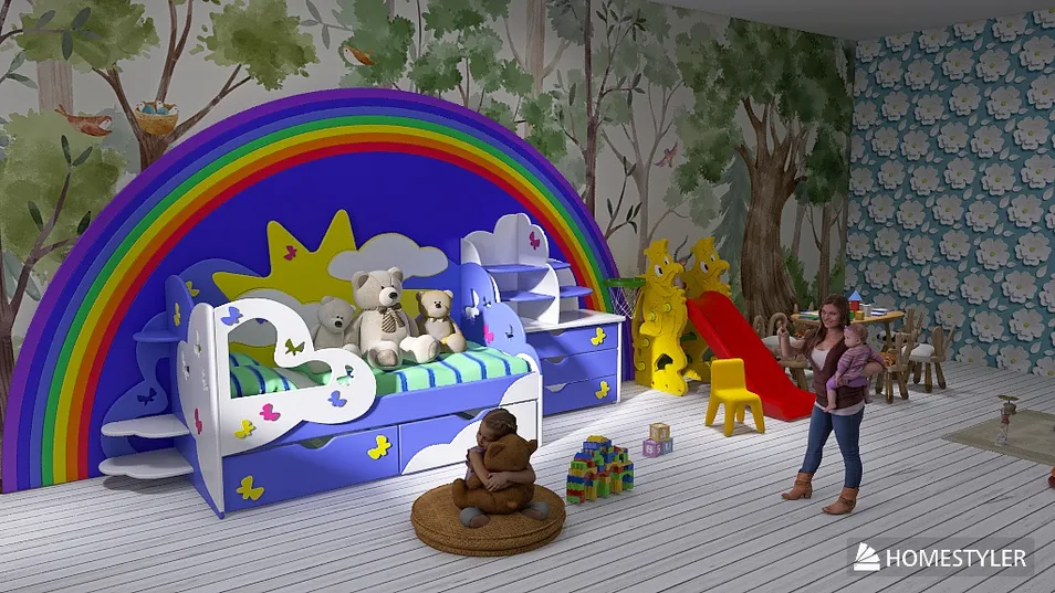 This delightful room bursts with color and whimsy, inviting children to explore and play. Plush toys sit nestled among vibrant decor, while cozy seating offers a perfect nook for imagination. It's a perfect blend of comfort and creativity, designed to inspire young minds.