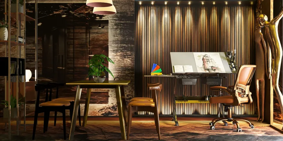 In a space where shadows dance with light, every corner whispers inspiration. The rich textures of wood and the gentle glow of warm tones create an inviting atmosphere, perfect for the artist's mind to wander freely. Here, creativity breathes.