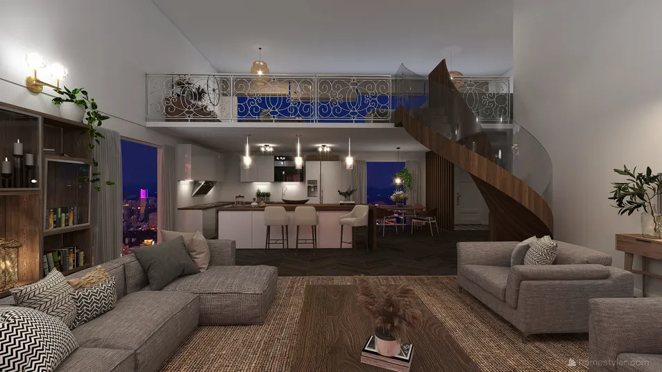 I've never done a house or an apartment with a loft and a beautiful view, so when I (finally ;D) figured out how to do the loft part, I wanted to try. At first the loft was only going to be an office, but since there was more than enough room, I decided to do a space that is meant only for looking at the view. There's also a rooftop terrace in the apartment, with a full kitchen and dining area, "living room" and some sun beds for relaxation. Hope you like it!