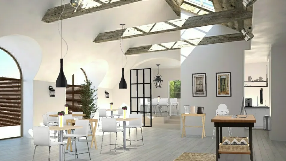 Come on in and enjoy the brunch of your dreams. Bright white and clean you just feel like this is the perfect place to forget your hung over. Theres a table size for everyone. A hostess stand and service station to the right.