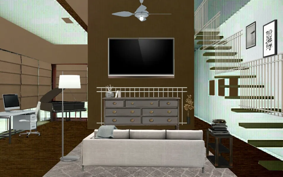 This is a modern, living room! I try ed to. at ch up the colors, using the colors grey, and brown! I really hope you enjoy! You can comment on my designs to give me feedback!