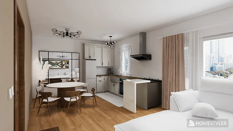 In this serene space, light dances off the sleek surfaces, merging functionality with elegance. The soft hues and minimalist decor create a tranquil atmosphere, where every corner whispers simplicity and charm, inviting one to linger just a moment longer.