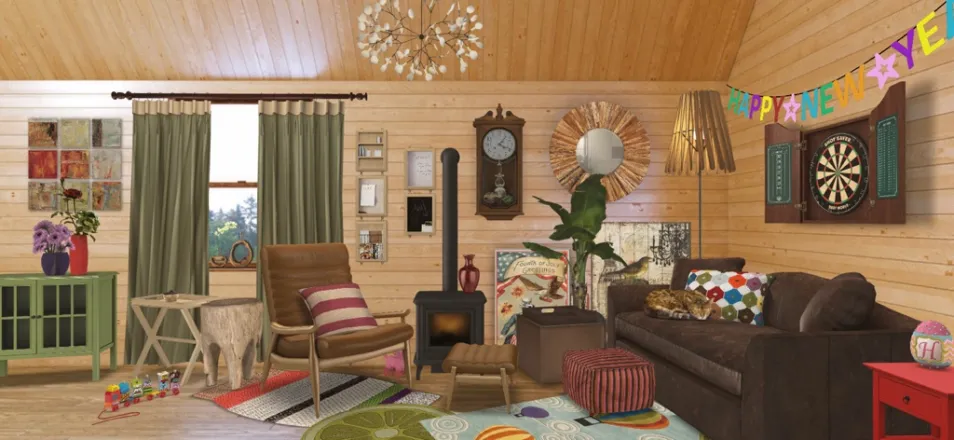 This gorgeous cosy cabin belongs to a young lady called Beth.Her father Garrett built this lovely shed for Beth when she complained she had nowhere for her children to have their friends over.Beth had previously had a New Years party here with her girlfriends & guy friends,hence why there’s still banners up.Beth is a very eccentric independent woman.