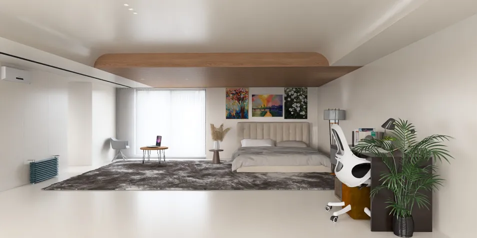 In this minimalist sanctuary, light dances across the smooth surfaces, whispering secrets of tranquility. The soft textures invite you to linger, while the art on the walls breathes life into the stillness, creating a space that transcends mere aesthetics.