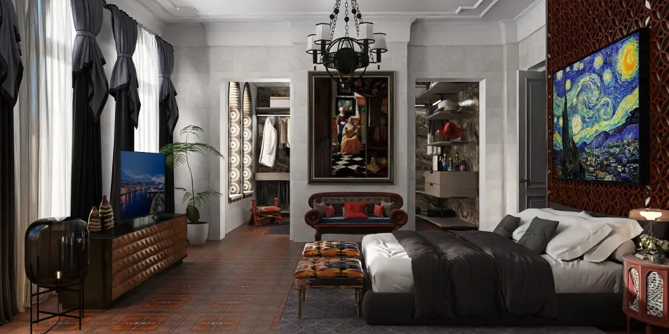 In this lavish room, silk curtains whisper secrets to the shadows, while a velvet sofa sighs beneath the weight of forgotten dreams. The air hangs heavy with irony: luxury, they say, is fleeting, yet here it lingers, like a wilted rose in a gilded vase.