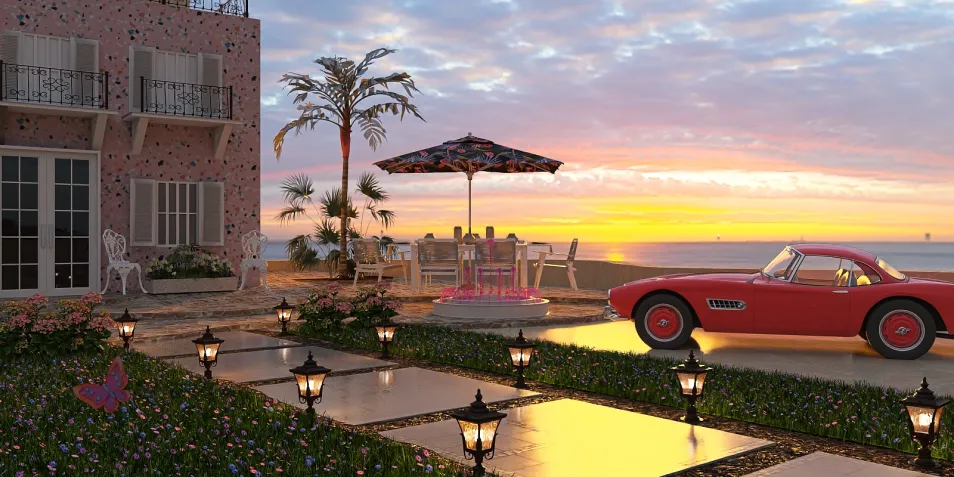 In the garden of excess, where roses wilt in borrowed splendor, a pink chariot of dreams awaits the twilight. Here, laughter mingles with the scent of fading petals, and one ponders: is this paradise or mere artifice draped in silk?