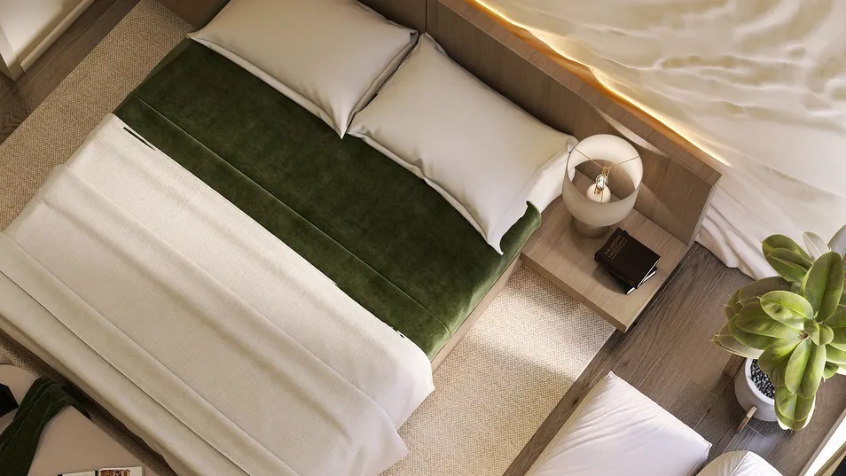 In a room where shadows dance to the rhythm of a forgotten jazz tune, the bed lies cloaked in soft green and white. A cat lounges lazily, while an unfinished manuscript breathes in the corners, echoing the solitude that lingers like the scent of whiskey.