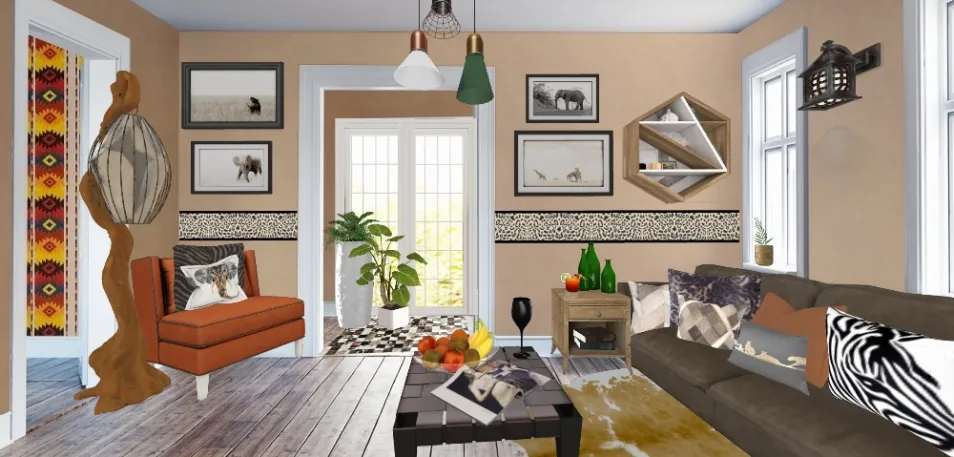 A touch of Africa to transport you back to the wild! Warm colours, earthy tones and animal print help make you feel right at home with additions of wood and plenty of cushions. Lighting adds the final touches.