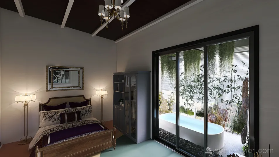 This design is about the Bedroom lodge and with a special decoration close to the inner nature of the bathtub shower room. It feels relaxing while laying in bed to look at another side of a whole room.