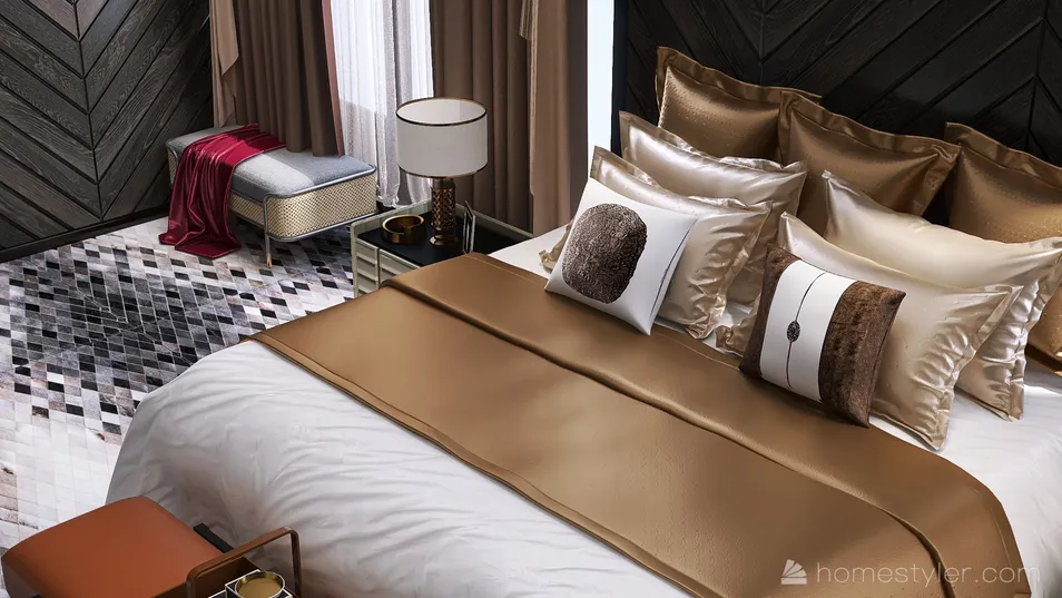 Inspired by the warm tones of the holiday season and the magic of the frozen winter, I created a small log cabin with delicate and gorgeous details. My primary colors were gold, white and black followed by crimson red to give that extra touch. Enjoy!!! "Winter, a lingering season, is a time to gather golden moments, embark upon a sensational journey and enjoy every idle hour." - John Boswell #AmericanRoomContest