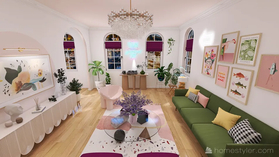 J'ai réalisé un salon dans un style maximaliste en piochant différents styles. On adore le mur de cadres colorés et les grandes bibliothèques qui permettent d'exposer des objets collectionnés et des livres. On aime cette déco qui donne du pep's et de la gaieté. Quelques poissons se sont cachés dans la pièce, les aviez-vous remarqué ? ;)