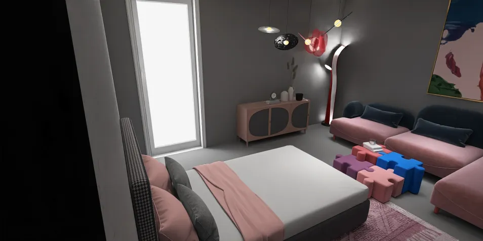 تتداخل الألوان الناعمة في المساحة، حيث تتراقص الأرائك المريحة على سجادة ذات نقوش دافئة. الأضواء المعلقة تتلألأ كنجوم في سماء داخلية، بينما تتناغم القطع الفنية مع الفخامة البسيطة، في مشهد يدعو للاسترخاء والتأمل.
