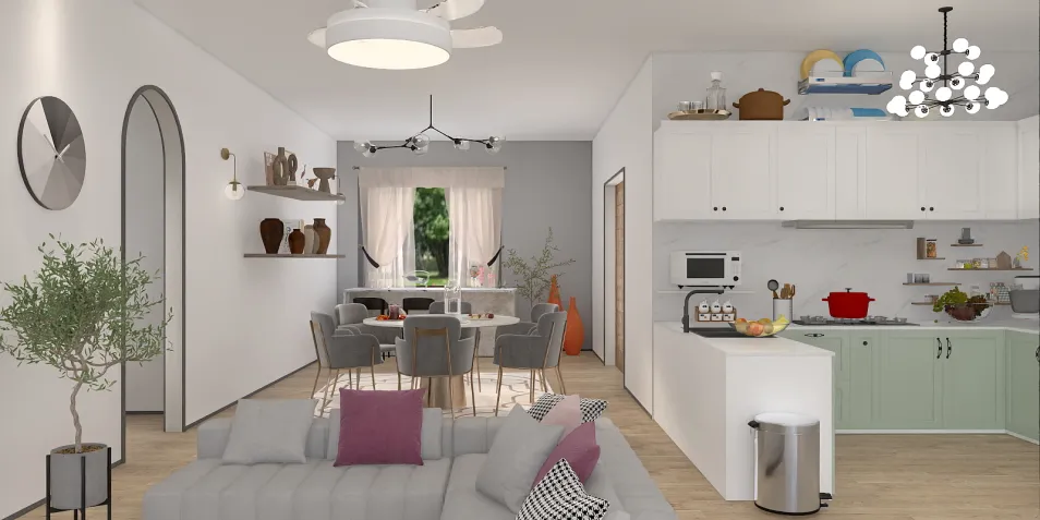 Living room, kitchen and dining area all in one photo but on a more modern way 😊