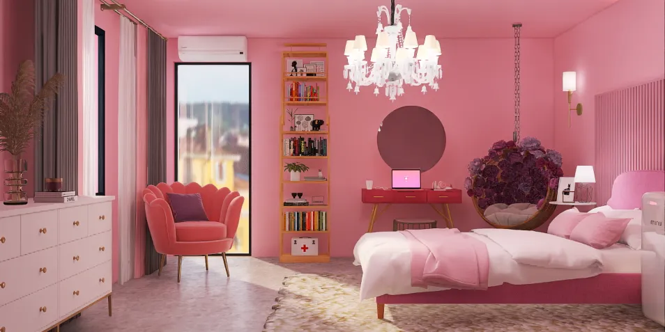 A homey pink vibe within the city. With a splash of pink, white and gold, this girly bedroom fits a modern and stylish woman.