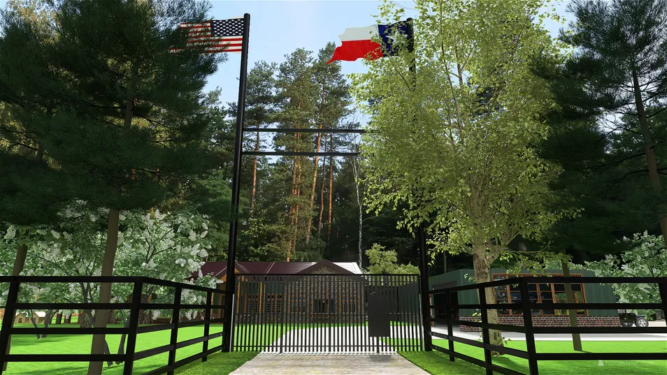 This is my metal building home. It is surrounded by a pipe fence and has an electric gate. It has four bedrooms, three full baths, and two half baths, a media room, 3-car garage, guest suite, wrap-around porch, pool and deck. It also includes a music studio since my husband and I both play.