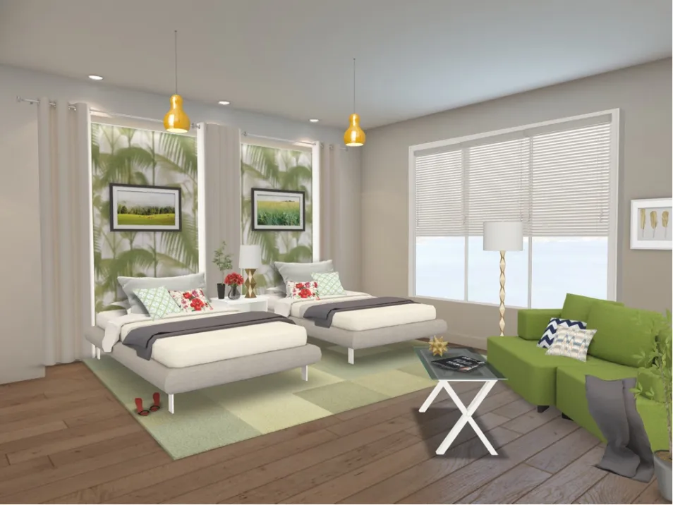 A room that sits by the beach in a resort!