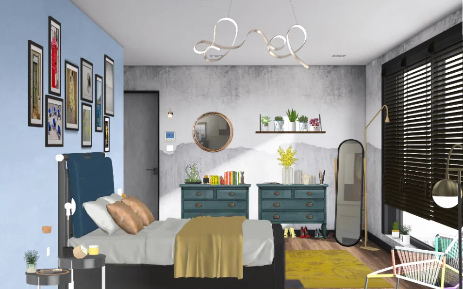 Bedroom for two or one, who knows these days. 🙈🙊 Gold, colorfull and fun. 🌼🌿🌾