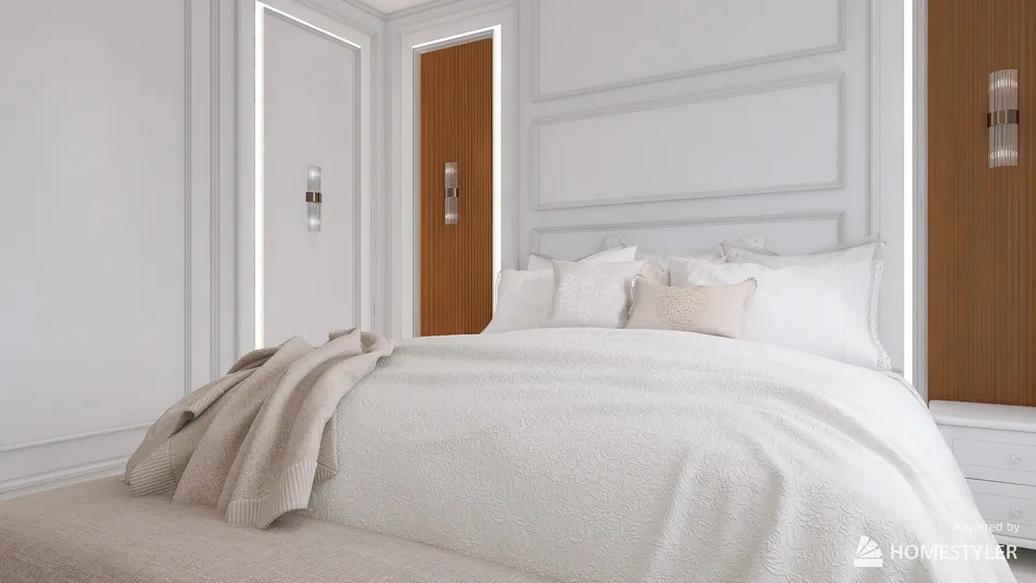 Design blends classic structure with modern details — traditional layout with contemporary lighting, mirrors, and furniture accents