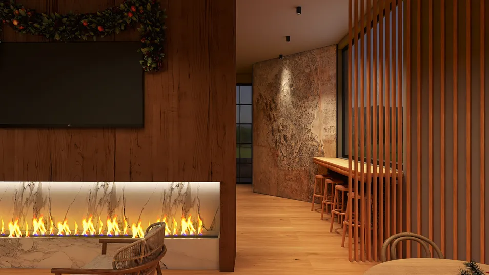 I designed a partial house with living room, dining room and kitchen with a lot of wood because that's coming in my mind when i m thinking about christmas. Another elements that comes from my mind is the fireplace, a cozy sofa, christmas tree, cookies, and a super snowish view. All the elements was combined and that's my idealistic home. A lot of coziness, not so much light, a tv and a sofa where i can watch netflix all day and some fire. And a cup of cappuccino.