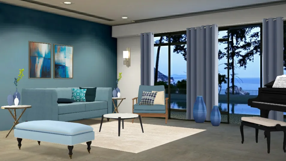 Chic and comfortable room in shades of blue.