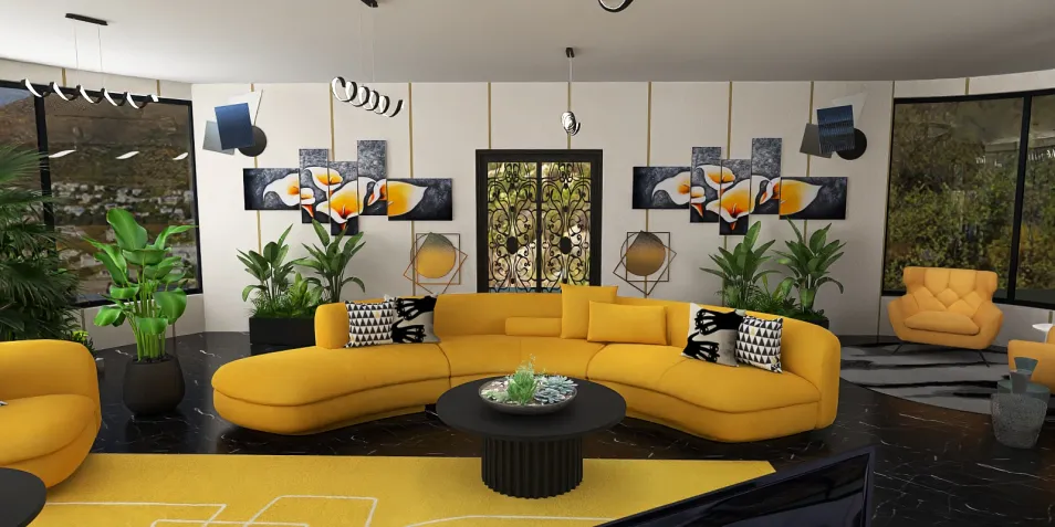 Yeah, I know the name is cliché. My goal is to create a classy and vibrant lounge that looks both luxurious and comfortable. I feel like yellow is a very hard color to design with so I wanted to test what I can do with multiple yellow elements and also throw in some marble on the wall just to create an accent wall to match the floor.
