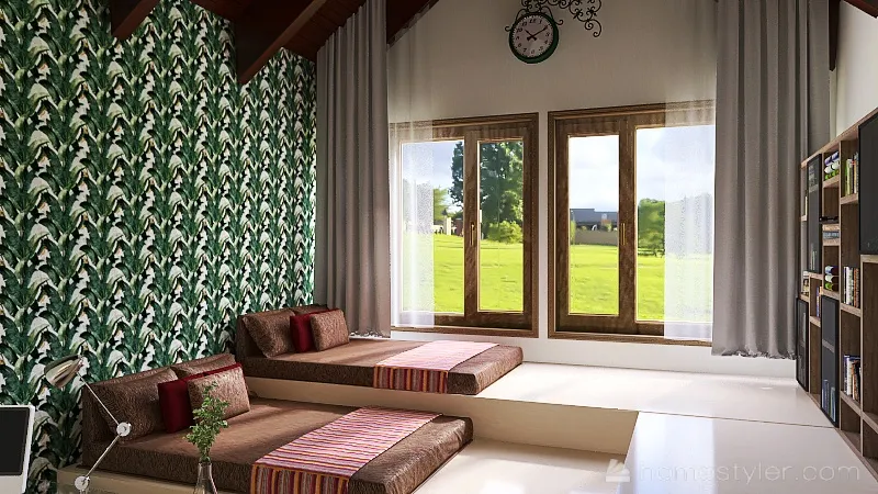 I don't really know what I was thinking... One of my favorite past times is looking at designs on google and then I saw a bedroom layout that looked very similar to this one, and I thought, why not? I went through customize and made the platform there and then I grabbed some beds from the Model Library and there we are! Hope ya'll enjoy!