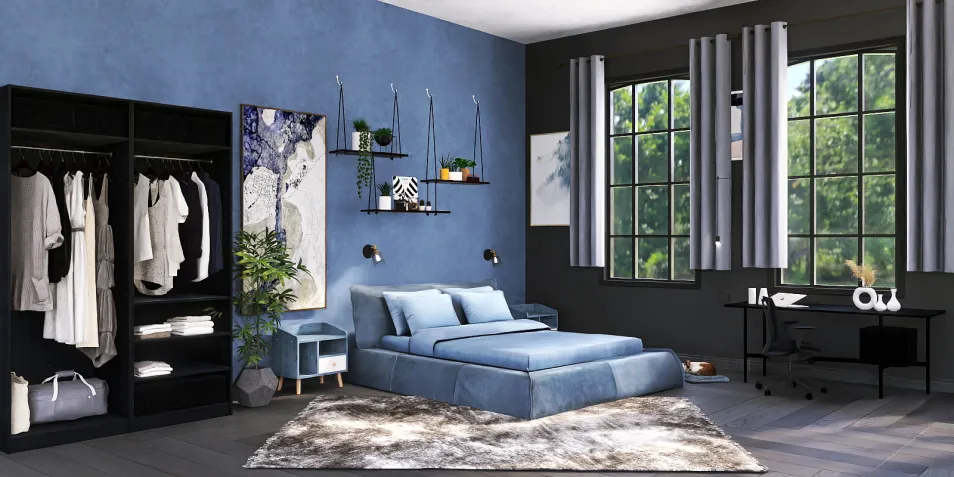 A room inspired by the calmness and desire of dark tans with the preservation of light, always with the inclusion of blue, blue shades.