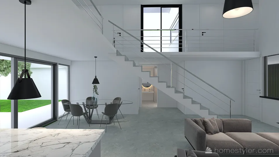 Proyecto que se implanta hacia el frente del terreno, en concordancia con el entorno, y que permite la presencia de un gran patio atrás. Se organiza en dos volúmenes relacionados a través de una doble altura, en donde en planta baja se desarrollan las actividades sociales , y la planta alta permite mayor privacidad e individualidad.