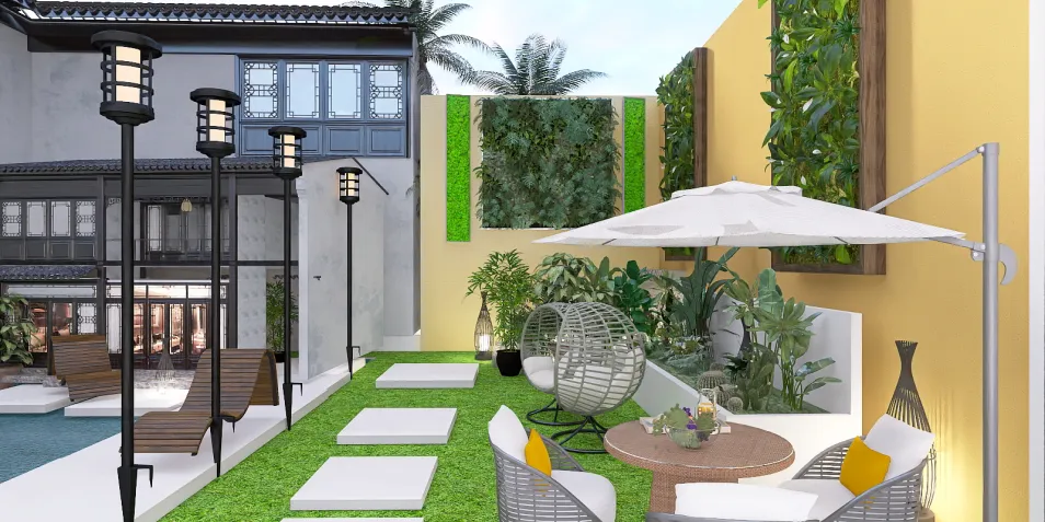 Uma área de lazer e jardim com piscina projeto que executei pra casa da minha cunhada...