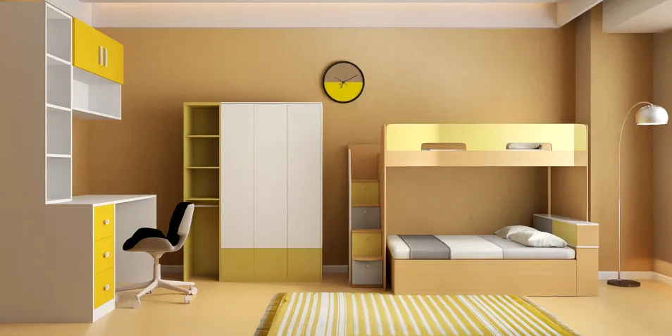 chambre pour enfant de couleur jaune@