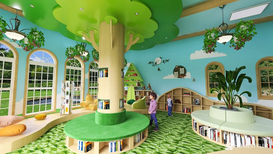 Make them love books while they're young with this garden-theme library.
