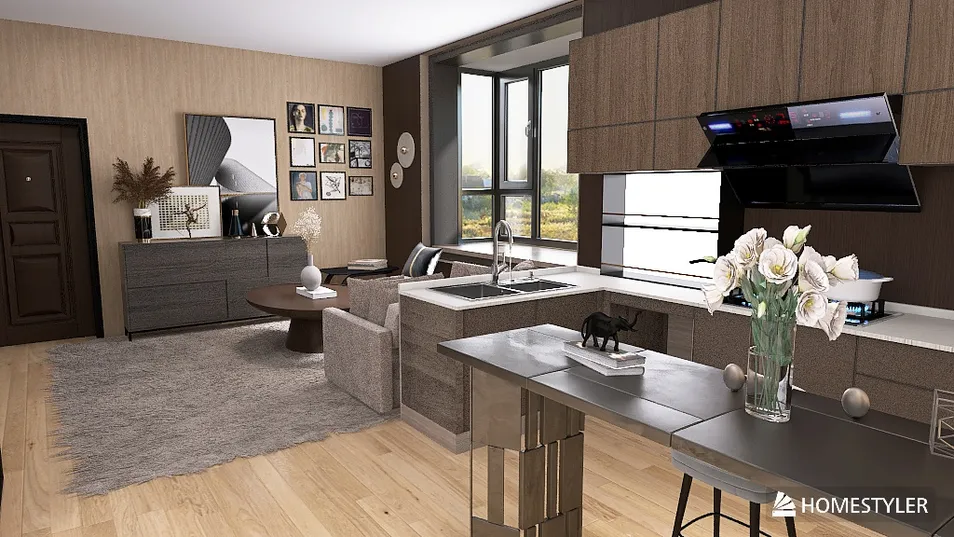 Welcome to your dream urban retreat! This stunning apartment features a seamless blend of modern design and cozy comfort. With an open layout that connects the kitchen, living, and dining areas, the space feels expansive and inviting. The sleek kitchen is equipped with state-of-the-art appliances and a functional island, perfect for casual dining or entertaining. Large windows flood the living room with natural light and offer picturesque views of lush greenery.The neutral color palette, highlighted by soft textures and minimalist décor, creates a serene environment, making this the perfect space to unwind or host guests. Contemporary artwork, modern furnishings, and elegant touches add to the sophisticated yet welcoming atmosphere.Whether you’re relaxing on the plush sofa, enjoying a meal at the chic dining table, or cooking in the well-appointed kitchen, this apartment provides both style and comfort. Don’t miss the chance to make this luxurious space your new home!
