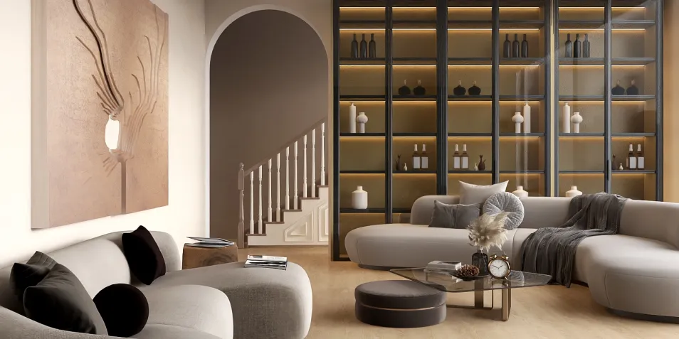 This space breathes modernity, with smooth lines and muted tones inviting you to linger. The soft curves of the furniture cradle you, while the warm glow of the shelves whispers secrets of forgotten wine. A perfect blend of comfort and sophistication.