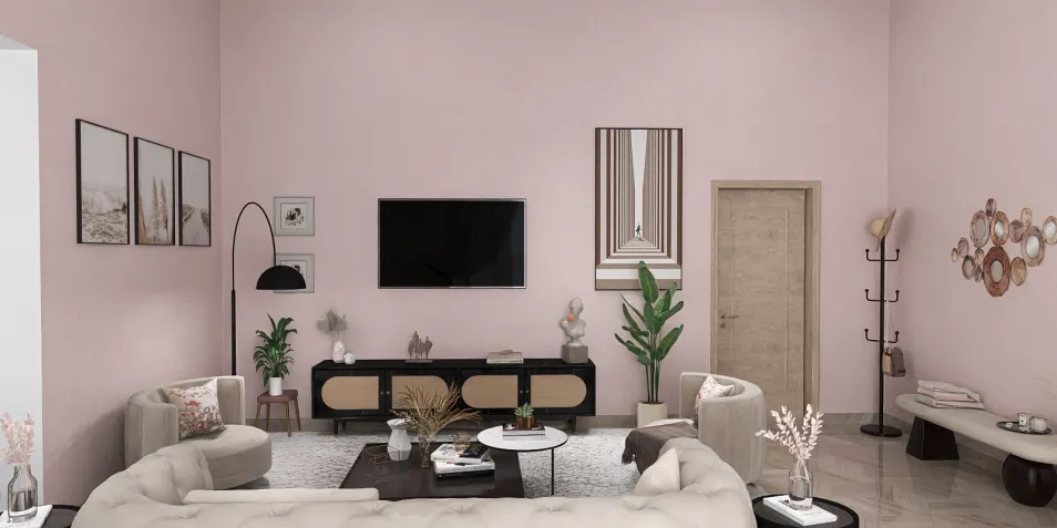 Modern glam, but kept soft and livable ✨ blush neutrals and sculptural shapes throughout.