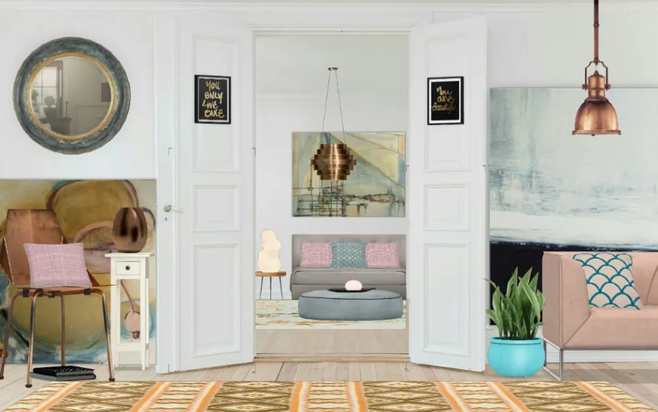 She is seating on the left, reading book, occasionally she checks her makeup. He is laying on the right, resting, on occasionally take a look at her. Both of them think about bedroom, occasionally.