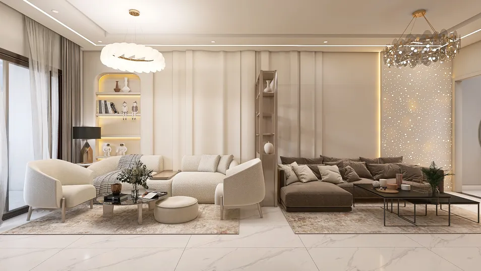 In this haven of tranquility, soft textures embrace the eye, while muted tones whisper elegance. The gentle glow of hidden lights dances upon plush furnishings, inviting one to sink deep into comfort. Yet, in this harmonious space, an unspoken longing lingers—echoes of stories untold.
