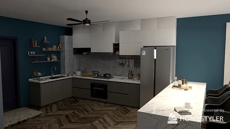 Modern urban apartment with artistic décor. 1,035 feet, includes fully furnished living room, kitchen fitted with stainless steel appliances, large bedroom with nature-inspired design, luxurious