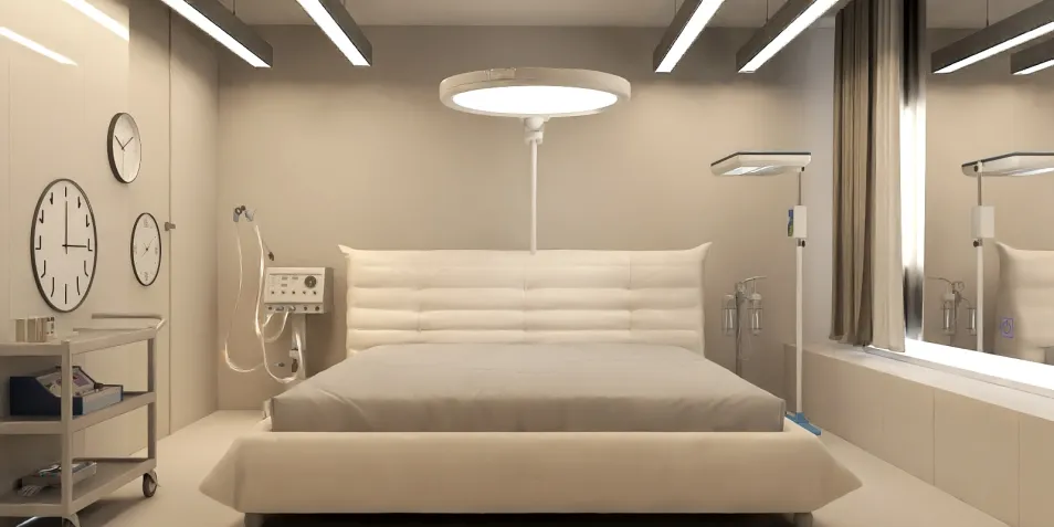 In this sterile chamber, time ticks away in rhythmic monotony, each clock a reminder of the unyielding present. The bed, a stark island of comfort, seems to whisper secrets, while the harsh light casts eerie shadows, blurring the line between safety and confinement.